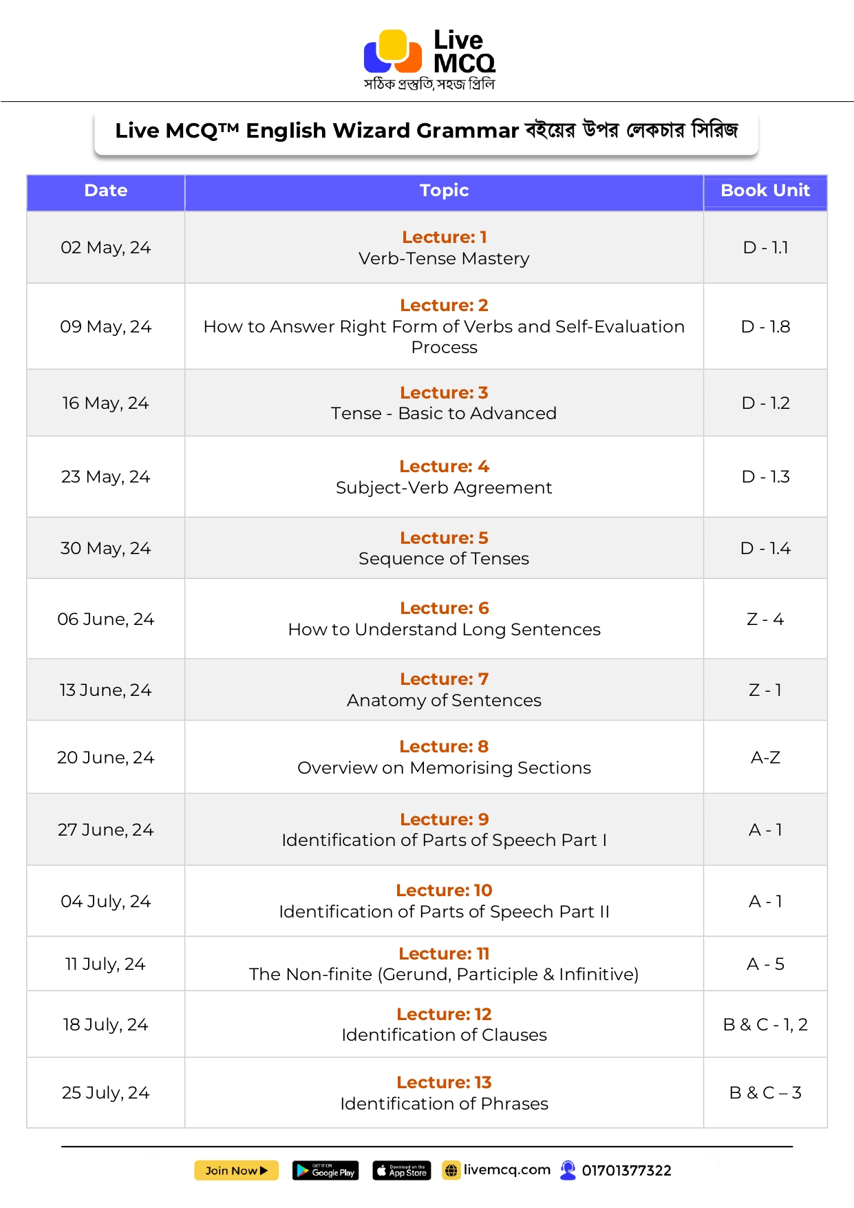 ইংরেজি গ্রামার ভীতি দূর করে আপনার চাকরির প্রস্তুতিকে আরও সুন্দর ও গোছানো করতে আজই Live MCQ অ্যাপের Book Store অথবা Live Publications ওয়েবসাইট থেকে বইটি সংগ্রহ করুন।