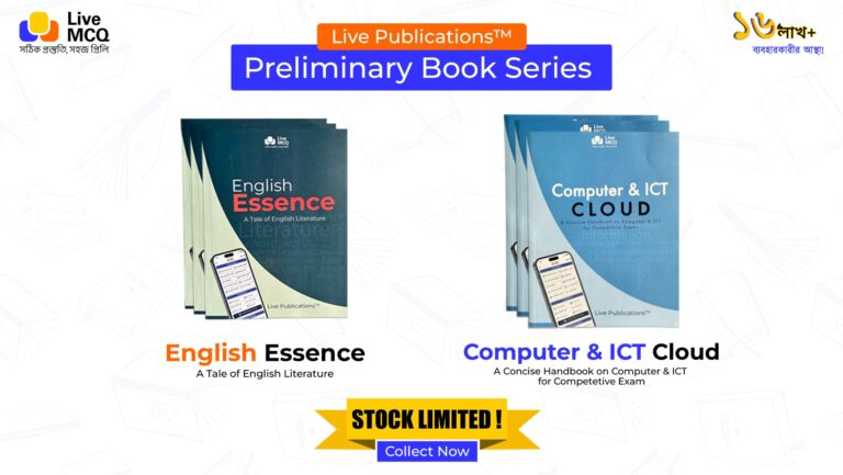 Live MCQ টিমের পক্ষ থেকে শুভেচ্ছা। আমরা Live Publications-এর প্রথম বই হিসাবে “Live MCQ English Wizard” বইটি প্রকাশ করেছি। আপনি Book Store থেকে সহজেই বই অর্ডার করতে পারবেন।